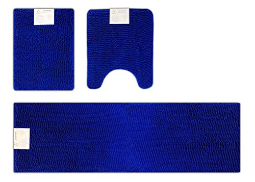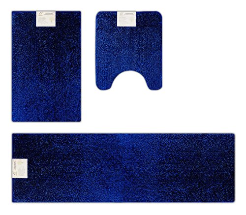 Verxii Home Memory Foam Luxury | No-Slip Soft Shaggy Bath Floor Mat Set | Multiple Choice (3-PCS Combo B, Solid Blue))