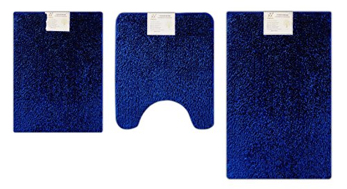 Verxii Home Luxury Bath Mat Set | Memory Foam Non Slip Soft Contour Shaggy Bath Floor Rug Set Multiple Choice (3 Pcs Combo A, Bright Blue)
