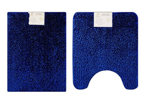 Verxii Home Luxury Bath Mat Set For Bathroom | Memory Foam Non Slip Soft Contour Multiple Choice (2-PCS Combo D, Solid Blue)