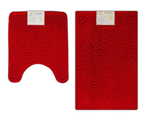 Verxii Home Luxury Memory Foam Bath Mat Set | Non Slip Contour Soft Shaggy Bath Floor Mat Set | Multiple Choice (2-PCS Combo B, Bright Red))