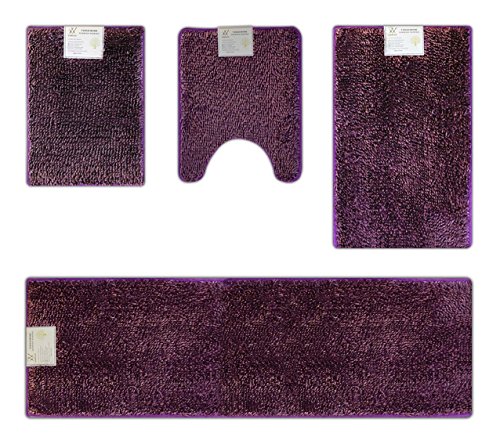 Verxii Home Memory Foam Luxury | No-Slip Soft Shaggy Bath Floor Mat Set | Multiple Choice (4-PCS Combo, Bright Purple))