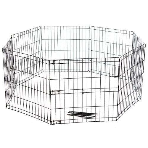 -. Feature : Collapsible removable indoor & outdoor pet houses; Pre-assembled no need tool set up & fold down / Made of long-lasting anti-rust & anti-corrosion steel wire; Fold nearly flat / 3 secure latch for door access; 8 stakes fix with ground; 1 hook for package not separated / Multifunctional pen can combine into varieties shapes, not just rectangle & square & octagon / Octagonal diameter 62" high 24"; 8 Panels, Each panel 24"W x 24"L; Gap 1.5"W x 5.5"L