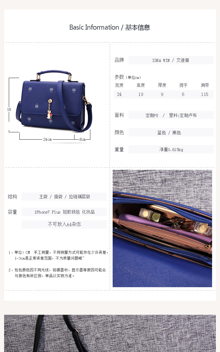 Bag size: width 24cm high 18cm thick 9cm portable 6cm
