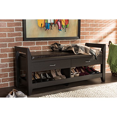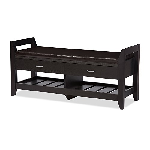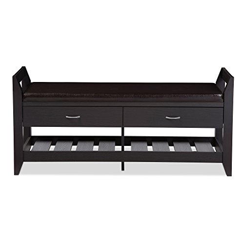 -. Title : Baxton Studios Maurine 2-Drawer and 2-Shelf Shoe Storage Seating Bench