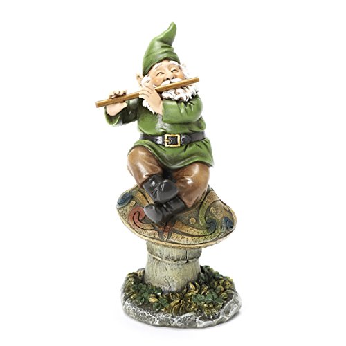 Joseph's Studio Gnome Playing a Flute Sitting on Mushroom Celtic Garden Stone, 7-Inch, Made of Resin Stone