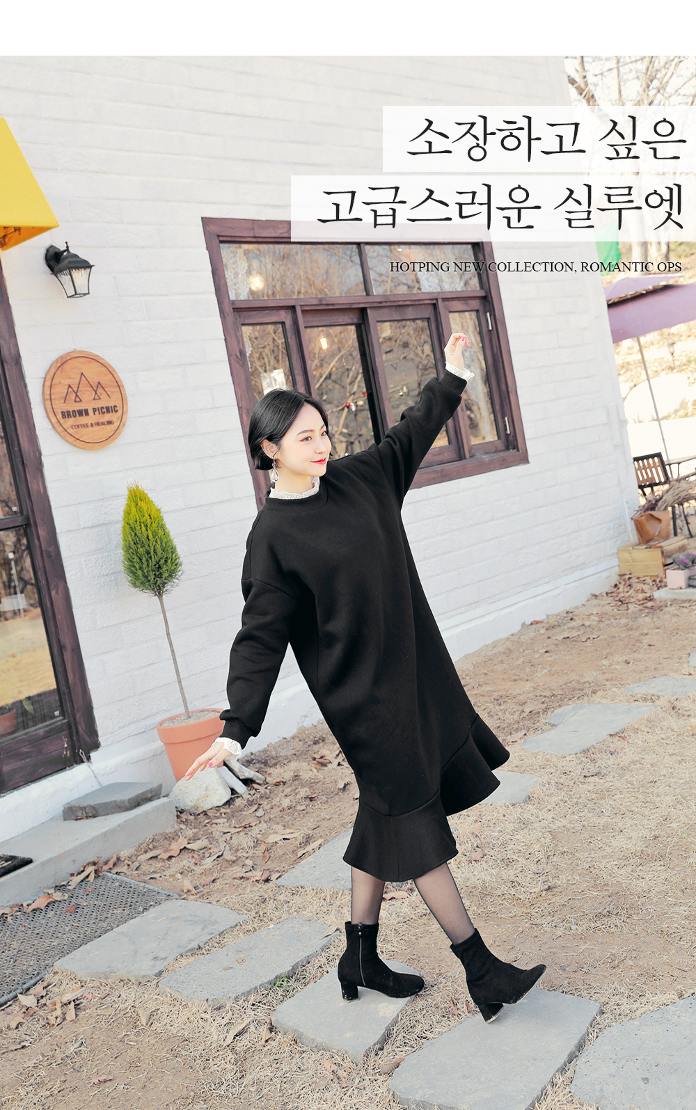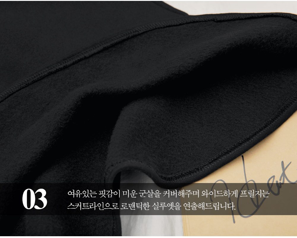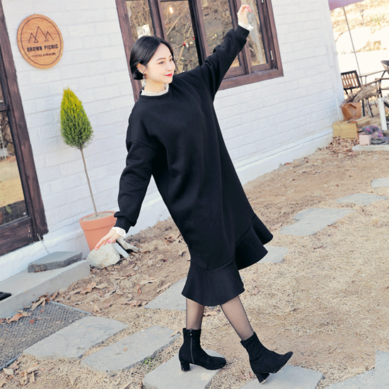 와이드한 프릴 밑단과 롱한 기장의 원피스로