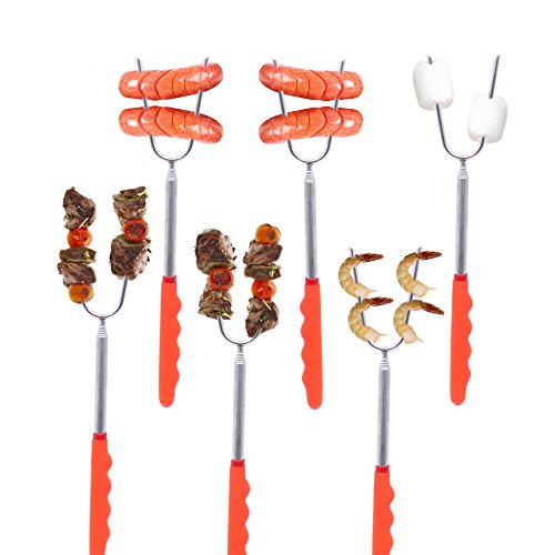 - Superior Quality:The recessed rubber handle gives you a more comfortable grip feeling, the toughness of the stainless steel enough to support you to barbecue you want, set of 6 forks, while enjoying barbecue, sausage, and marshmallow multiple delicious.To avoid food scorching, you can also rotate the lever.
