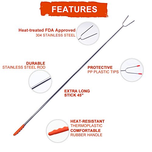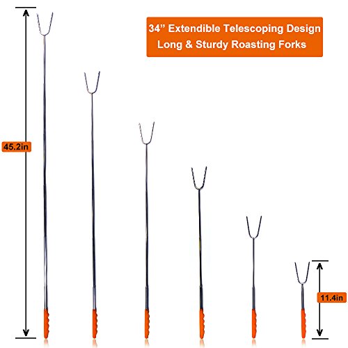 - Safety Design:The 45-inch retractable grill fork design allows your child to away from the fire but enjoy a better bonfire. Cutting-edge rubber protection head to your family to provide greater barbecue fun.