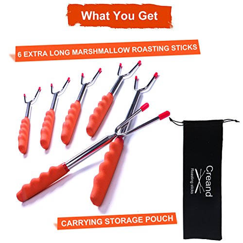 Creand Marshmallow Roasting Sticks,Set of 6 Scalable To 45'' Long Smore Skewers&Hot Dog Sticks,Perfect for Campfire,Fire Pit,Camping and BBQ,Super Safe Cookware Kit for Kids(6 Sticks and 1 Canvas Bag)