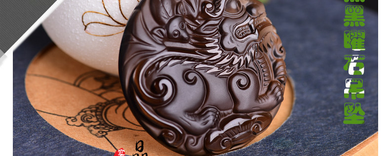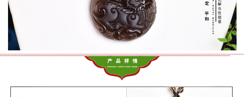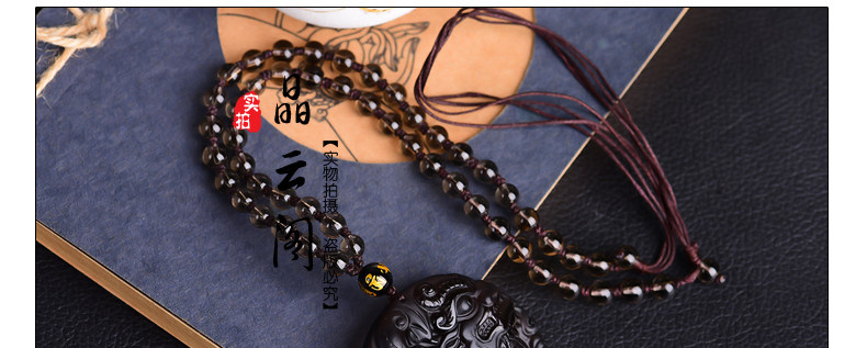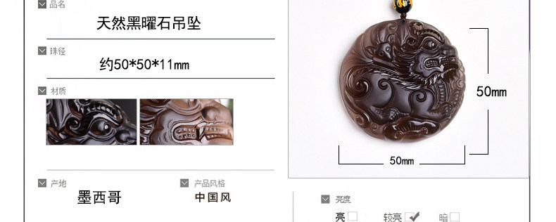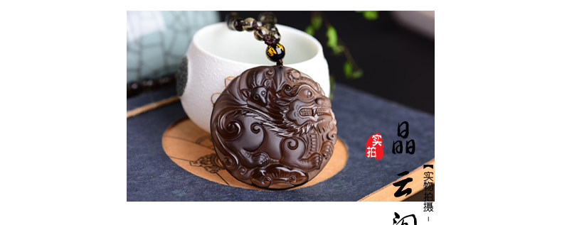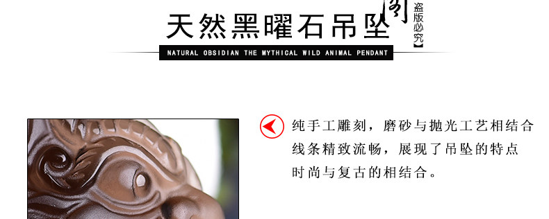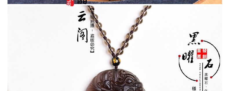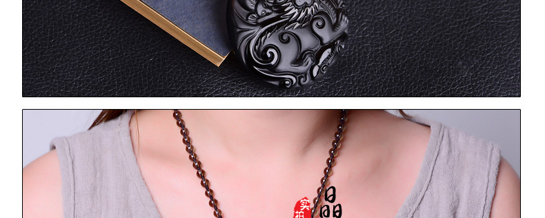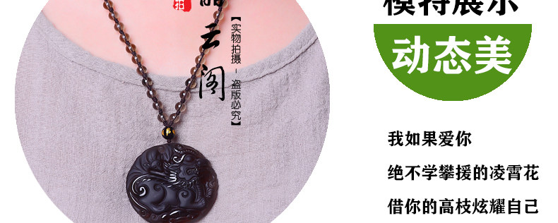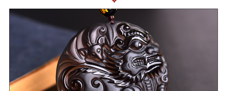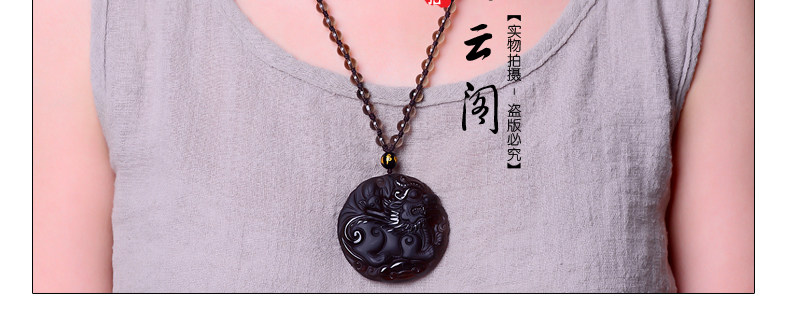 开光天然冰种黑曜石麒麟吊坠 福麟赐瑞男女款饰品挂件项链