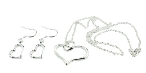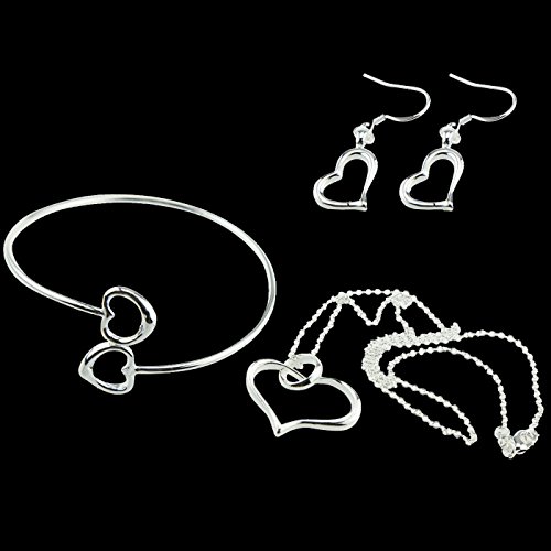 -. Feature : Lovely shiny silver three piece set of heart jewelry is beautiful yet simple and elegant / 18 inch necklace, earrings and cuff bracelet set say I love you with hearts / Complete set is a beautiful gift for girlfriend, bridesmaids, wedding party, any occasion - Awesome gift choice for any occasion- birthday, Christmas, Easter, Valentine's Day, Mother's Day / Perfect for mother, girlfriend, bridesmaids, teens, girls, little girls, friends, any love in your life / Buy now at great sale P.R.Ice - Satisfaction guaranteed - Join other stylish and happy customers