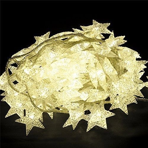 Battery Operated String Lights Outdoor,16 Feet 50 LED Five-Pointed Star Christmas Lights Led Fairy Lights for Home Decoration (dimmable, Ip65 Waterproof, Warm White)