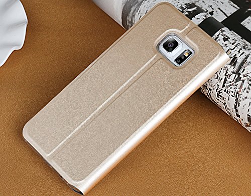 Kollea PU Leather Big Window View Folio Flip Stand Case for Samsung Galaxy S7 Edge - Gold