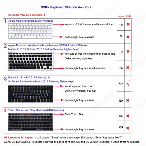 Design to fit for NEWEST 12-inch MacBook with RETINA Display (2015/2016 NEWEST VERSION) Model: A1534 and New MacBook Pro 13 Inch A1708 (2016 Oct. Release, No TouchBar), US layout only