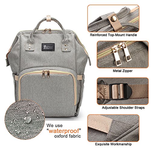 Diaper Bag, Modoker Large Capacity Mummy Backpack, Multi-Function Travel Nappy Bag, Nurse Bag for Baby Care, Waterproof Stylish and Durable (Grey).
