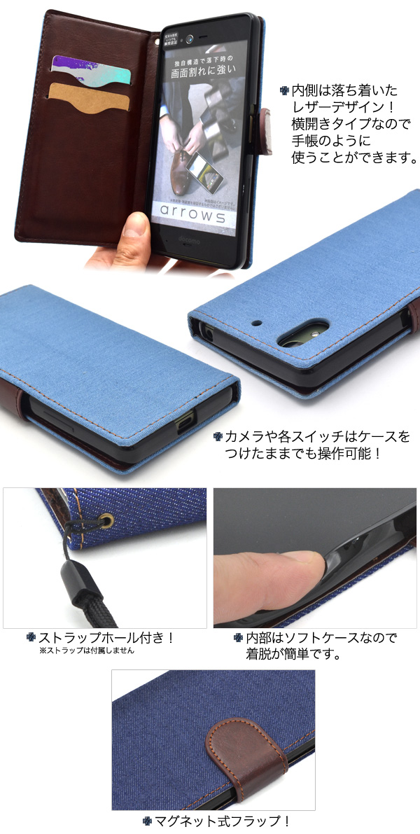 arrows NX F-01K用デニムデザイン手帳型ケース