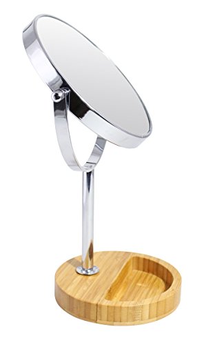 JustNile Double-sided 360 Swivel Vanity Makeup Bathroom Mirror with 3x Magnification on a Bamboo Wood Stand - 7 inch, Chrome