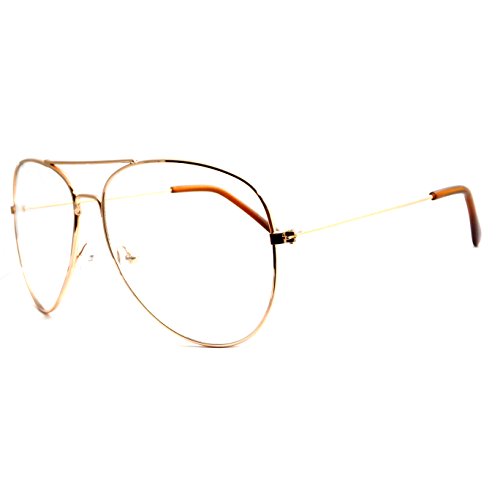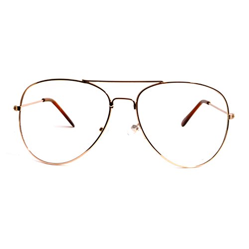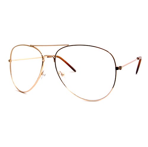 VINTAGE Aviator Retro Metal Square Frame Clear Lens Eye Glasses GOLD
