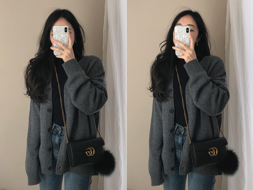 여리여리한 무드의 기본 니트가디건을 소개해요.