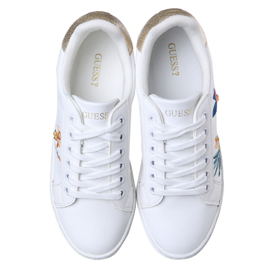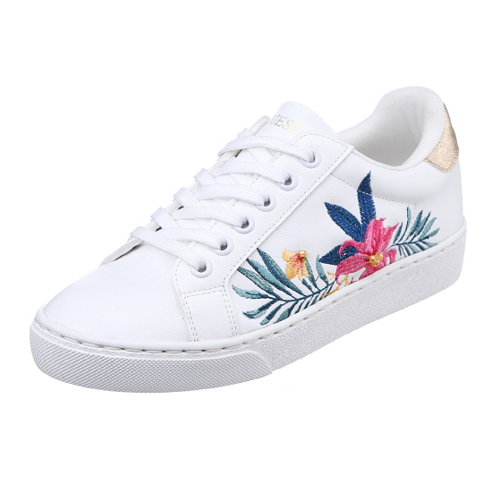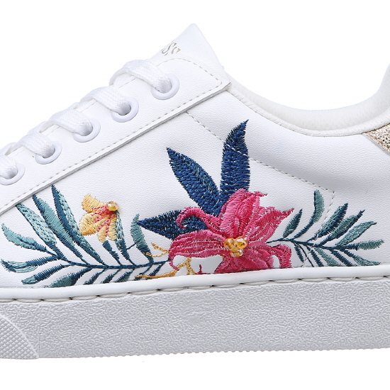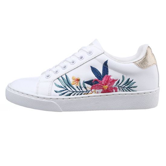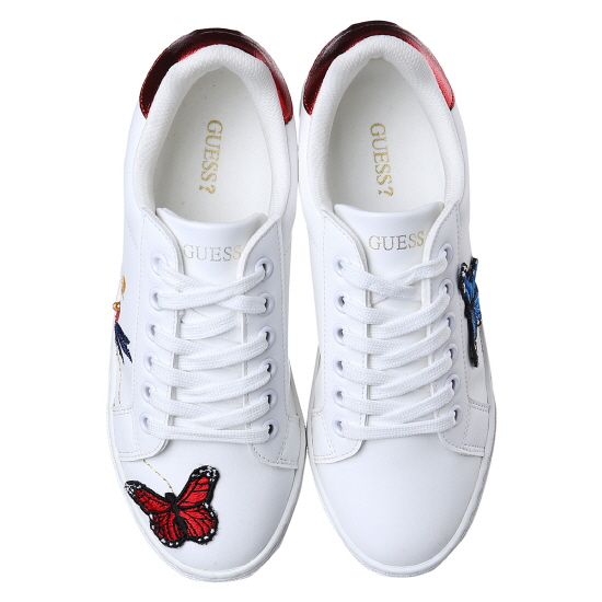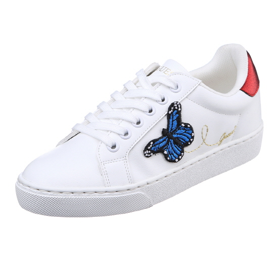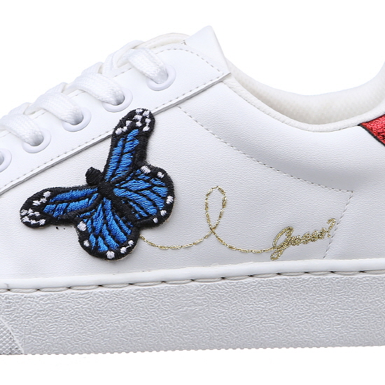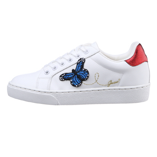 * 화이트 바디에 플라워 자수와 비비드한 나비 모티브가 돋보이는 스니커즈