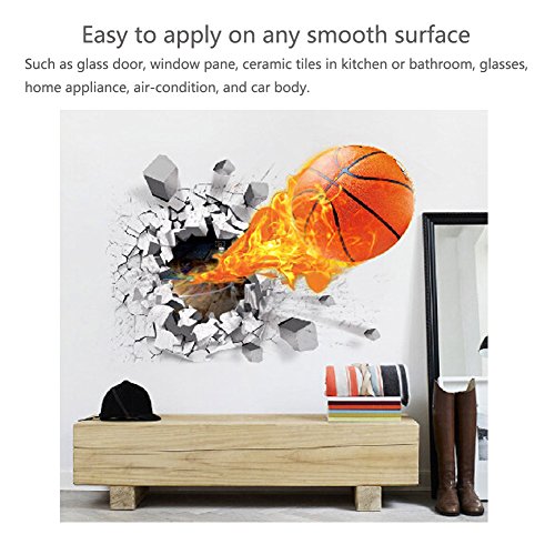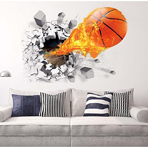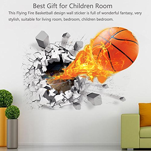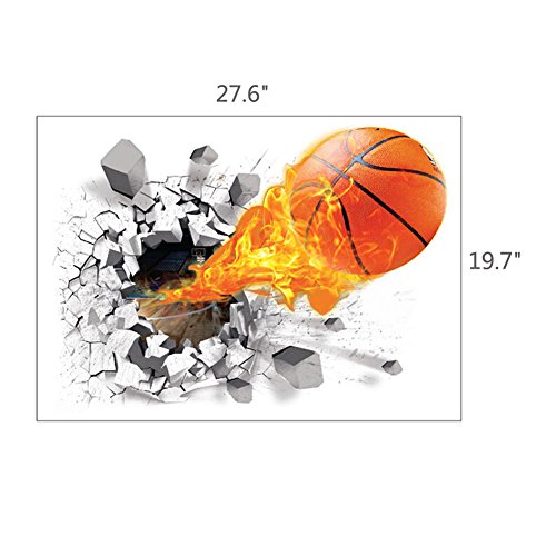 HaloVa 3D Flying Fire Basketball Wall Stickers, Broken wall, Removable Wall Arts Decals Murals for Children Kid Baby Room Decor