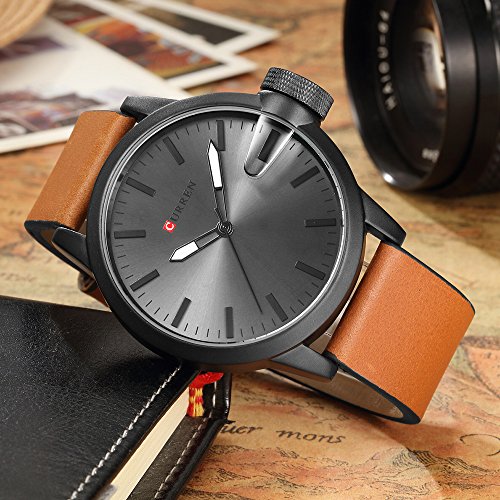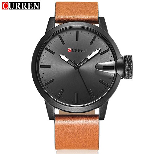 -. Title : CURREN Original Brand Men's Sports Waterproof Leather Strap Wrist Watch 8208 Black Brown Black