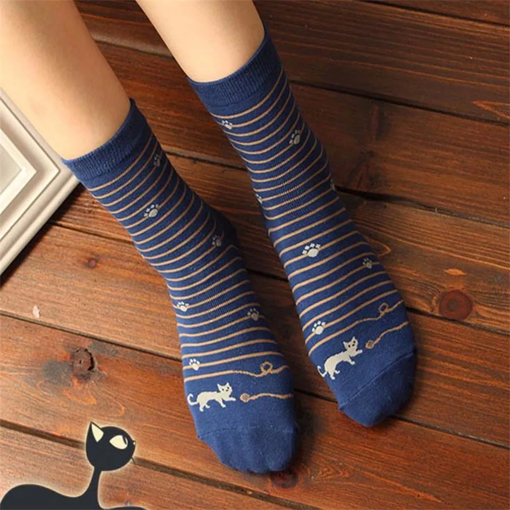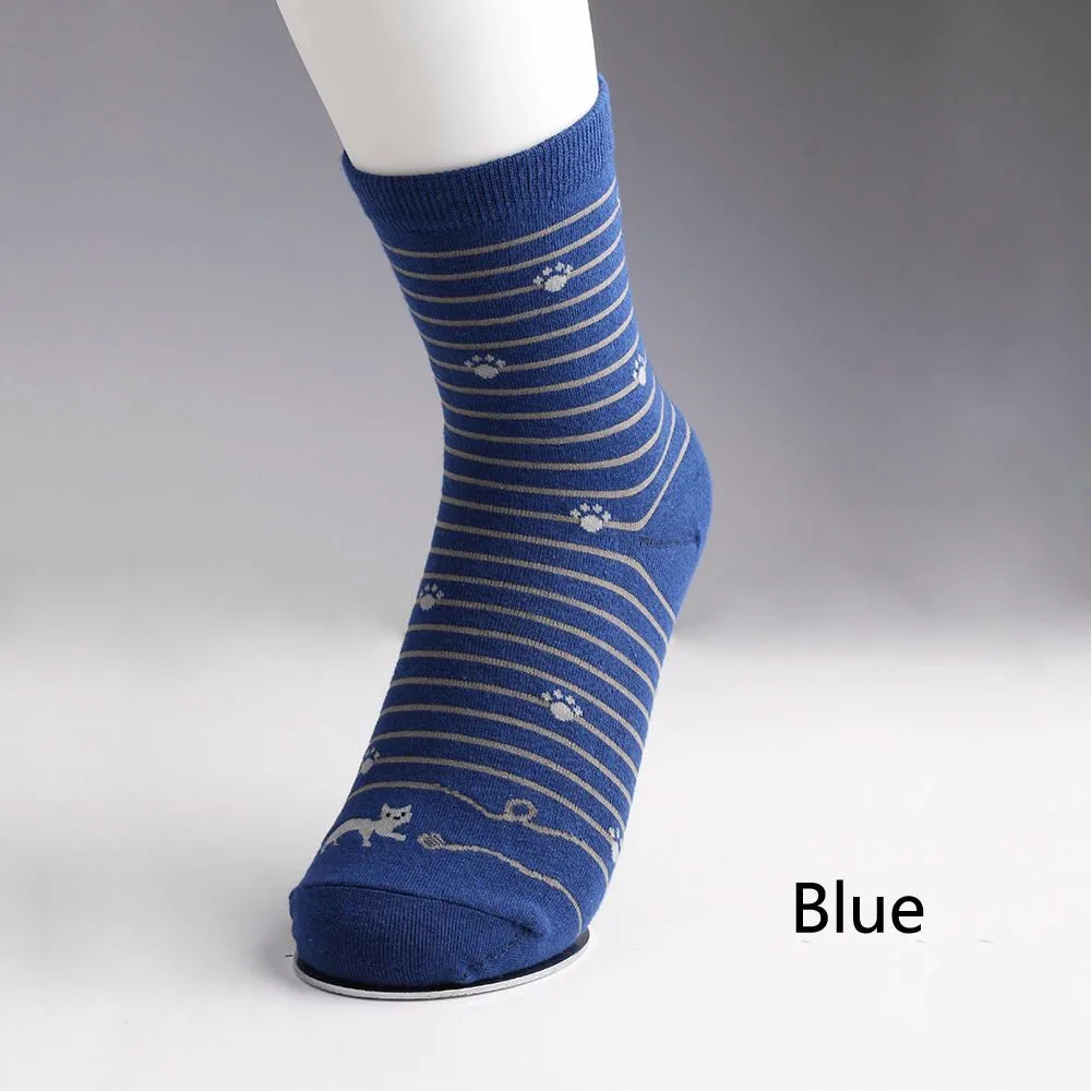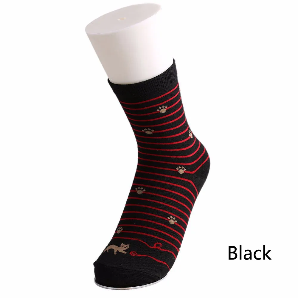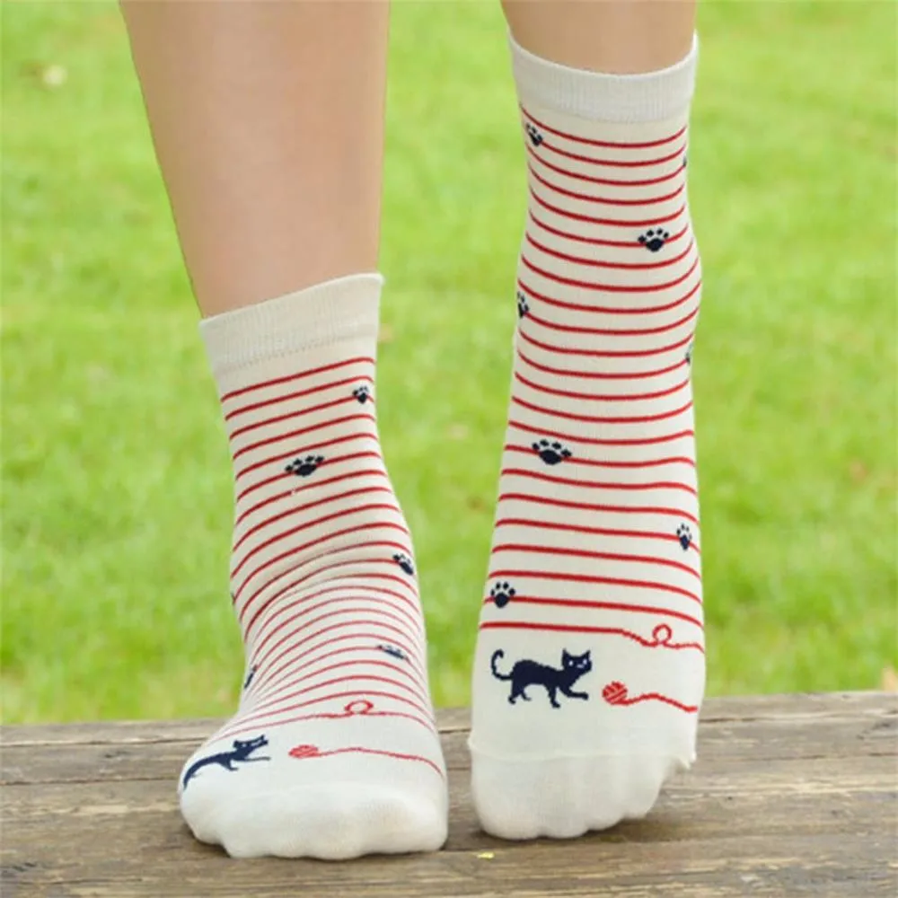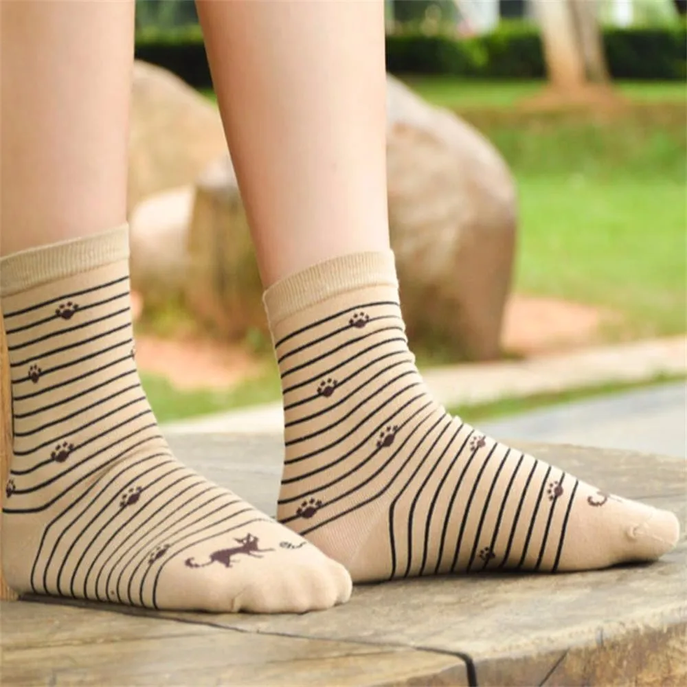Model Number: Cute Cartoon Animal Print Cat Footprint Girls Ankle-High Cotton Socks