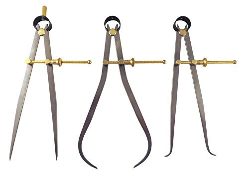 3 Piece Set Toolmaker's “Yankee” Rapid Adjust Quick Spring Nut Dividers, Inside ID & Outside OD Calipers, 0-8.5” / 215 mm Range, Brass Fulcrum and Fine Adjustment, Flat Leg, C7-8, C8-8, C9-8