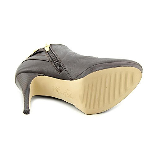 Round Closed-toe heeled booties with zipper closure on the inner side.