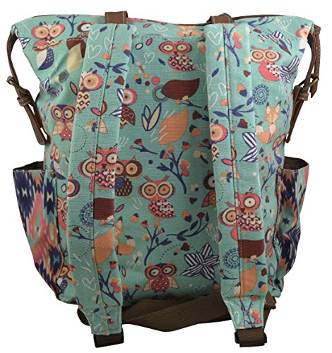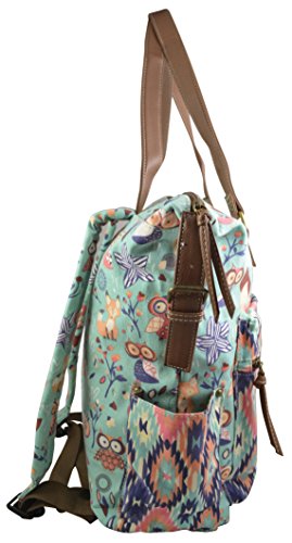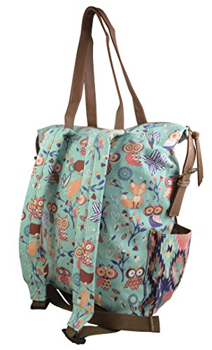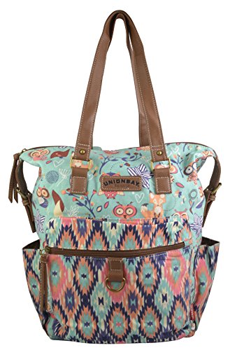 -. Feature : Unionbay Women's / Girls / Teen Hobo Handbag Top Handle Tote Convertible Backpack w/ Boho Owl Fox Aztec P.R.Int on Canvas / Large-sized, fully lined roomy Tote Double handle and convertible to backpack. Cotton bag has soft, faux leather trim accented with brass hardware. Inside there are two slip top pockets and one zippered pocket and two side pockets. / Measures about 15.5 inches Tall by 15 inches width by 5". It's the perfect size for everyday, School, Office or weekender. Perfect for high schoolers, teens, Young adults and pre-teens. / This hands-free use has the option to carry as Tote or Backpack. Bag P.R.Int includes Boho Owl Fox P.R.Int alternating with rows of Aztec/Tribal/Native designs. This boho chic bag makes a great gift! Perfect for all ages, all seasons.