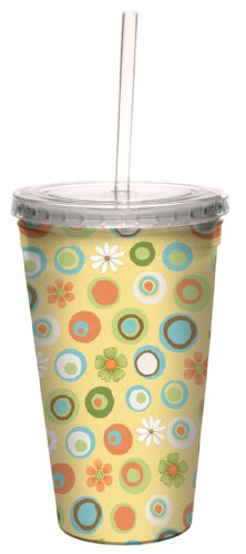 Tree-Free Greetings 80245 Dots and Daisies by Debbie Mumm Artful Traveler Double-Walled Acrylic Cool Cup with Reusable Straw, 16-Ounce