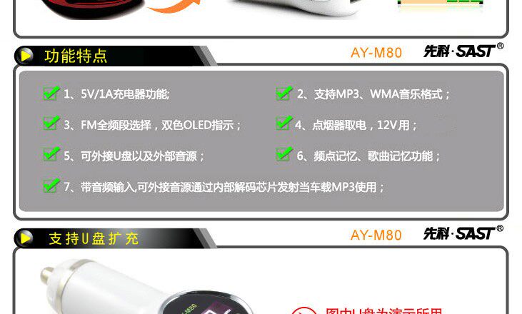 Product model: SAST -M80 (maximum support 16G-U disk card reader)