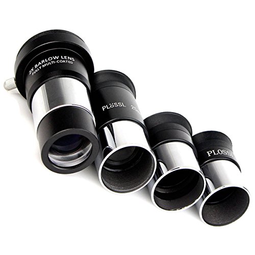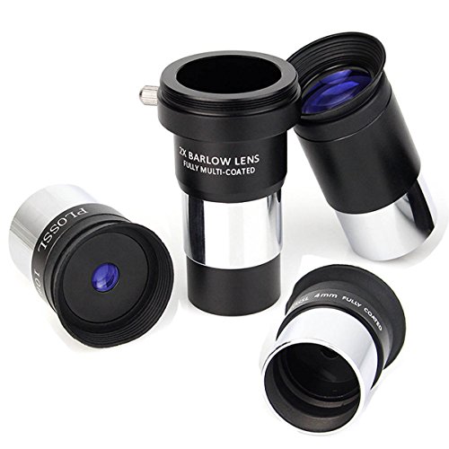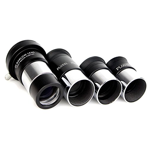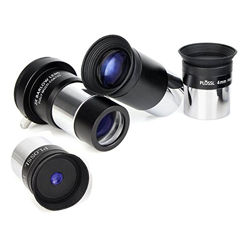 4mm 10mm 25mm plossl eyepieces;2x barlow telescope accessory kit threaded for 1.25” telescope eyepiece and filters;high definition;2x barlow astronomical telescope double the power of any 1.25" telescope eyepiece with the orion shorty barlow lens