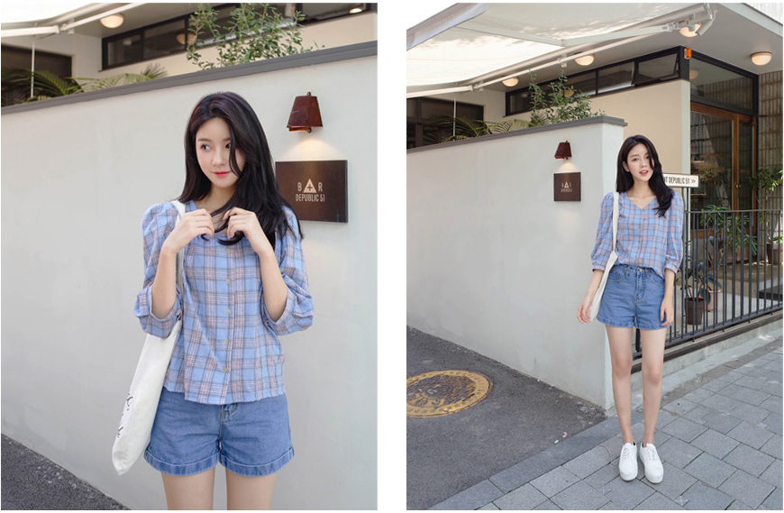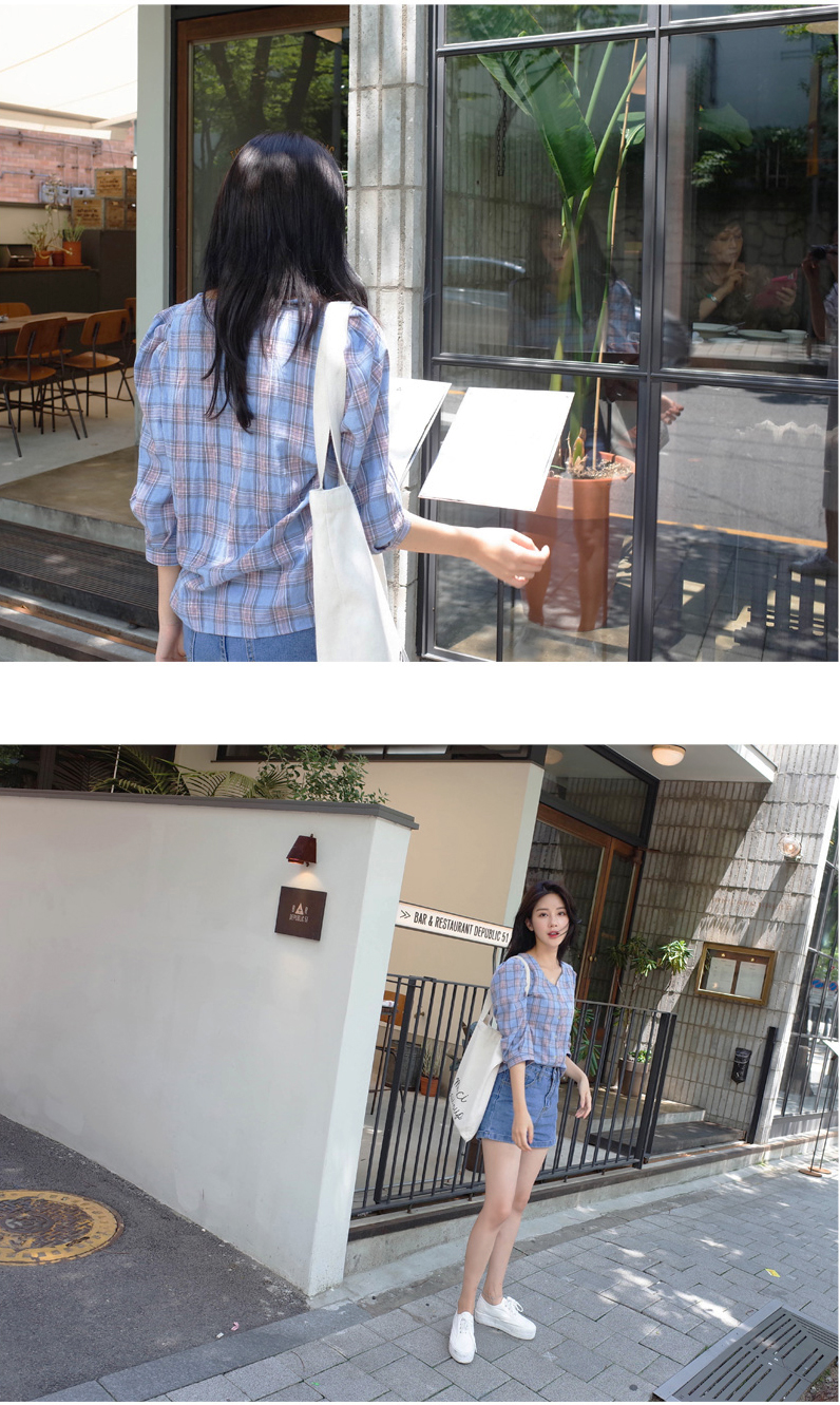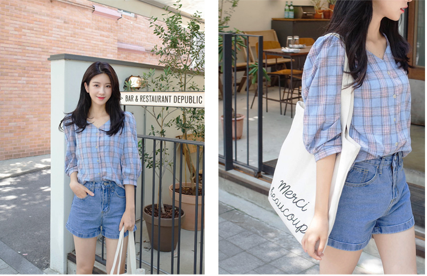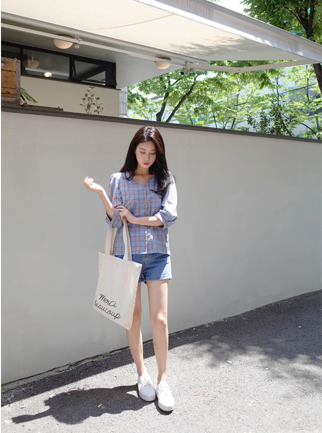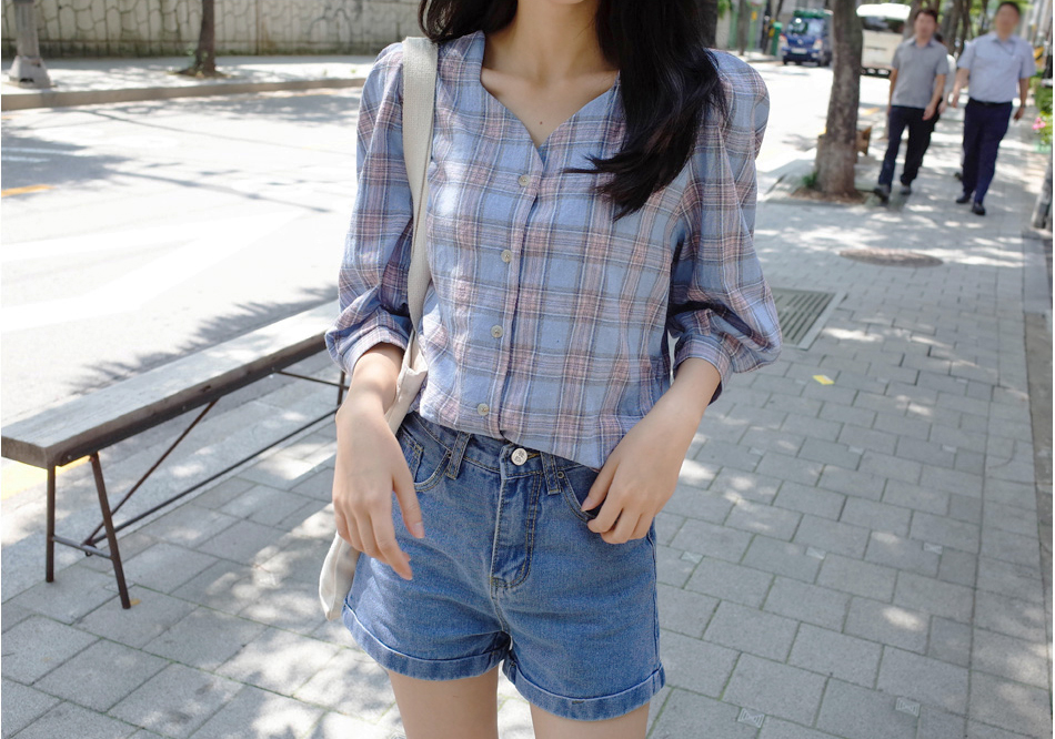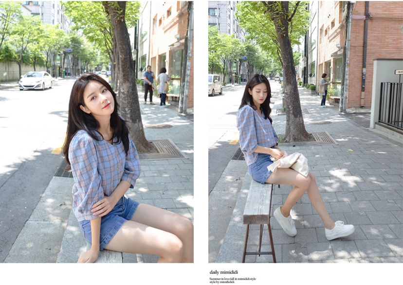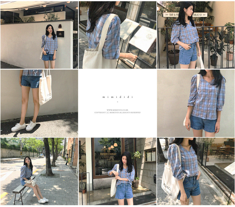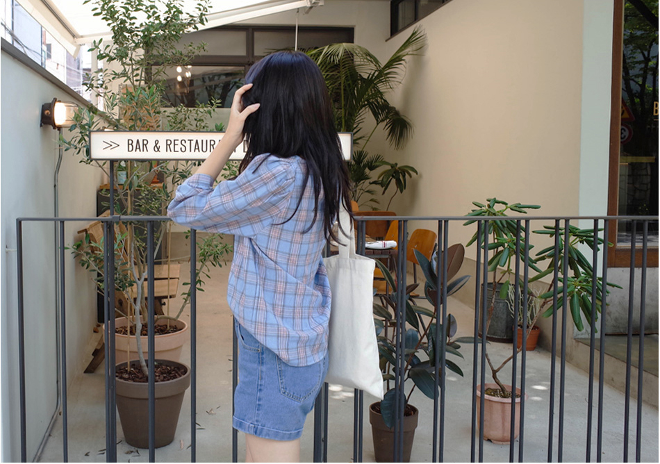 넥라인이 특별한 체크블라우스를 소개할께요:)
