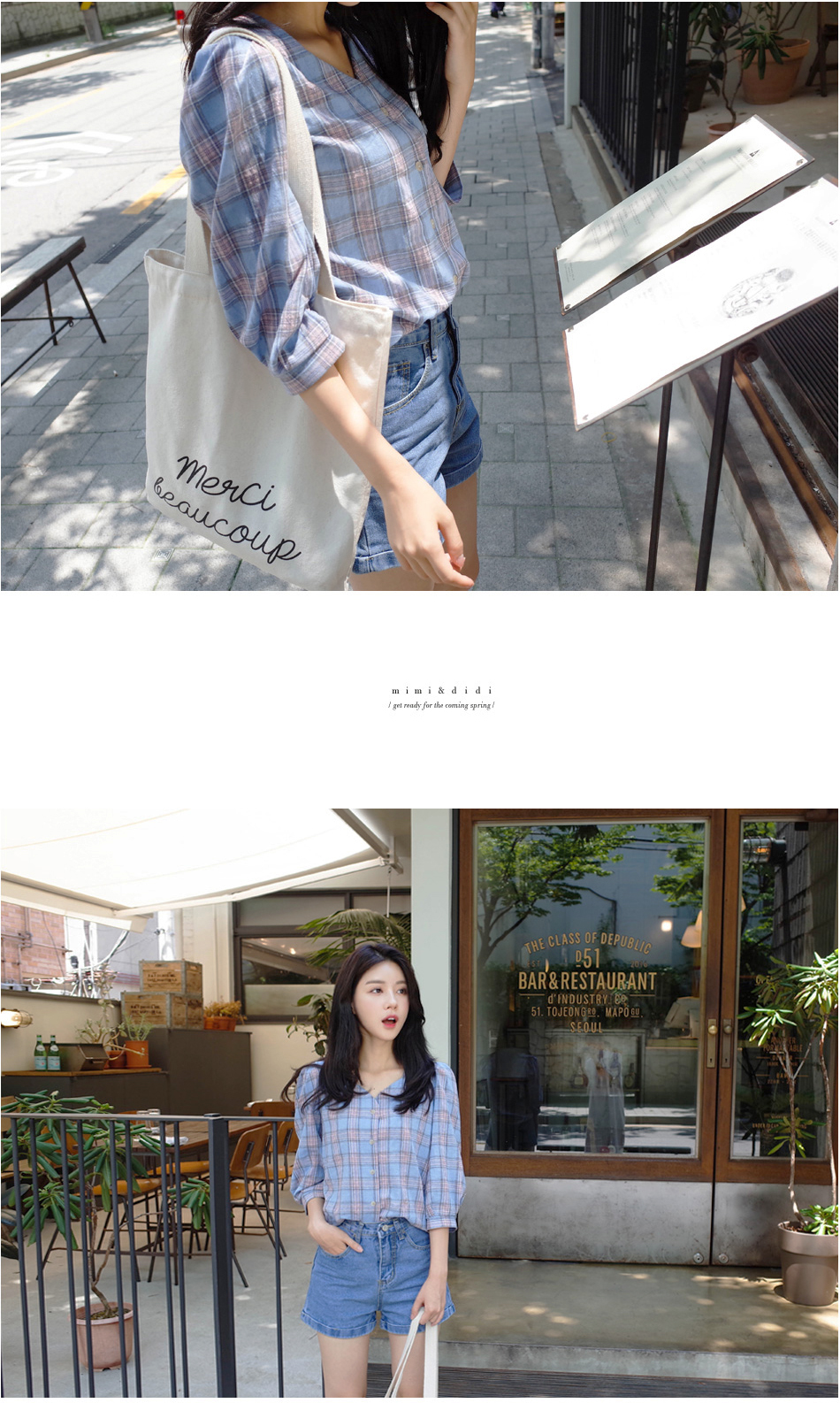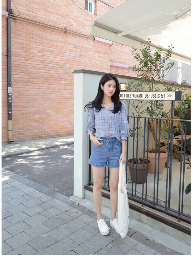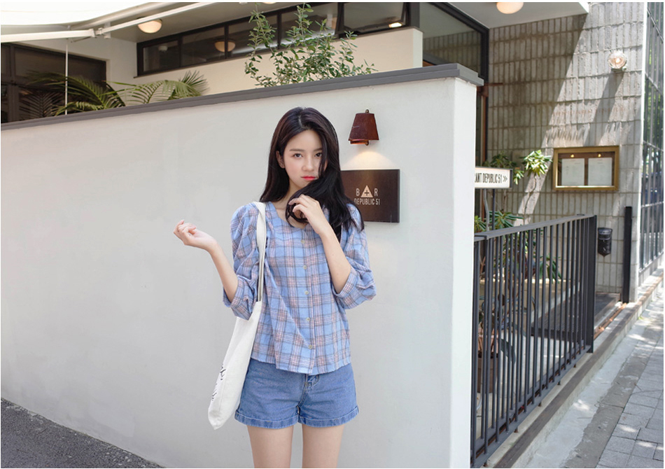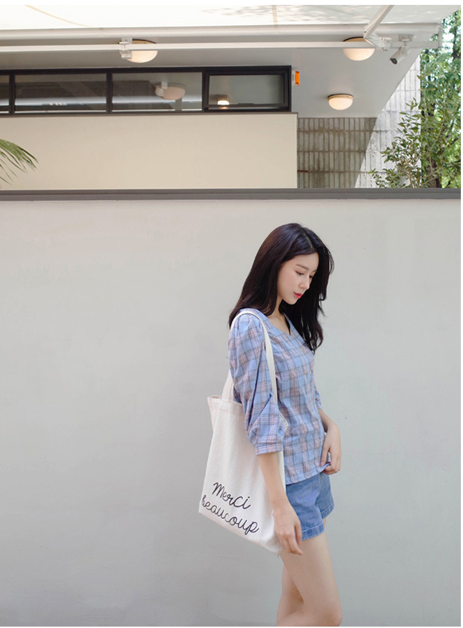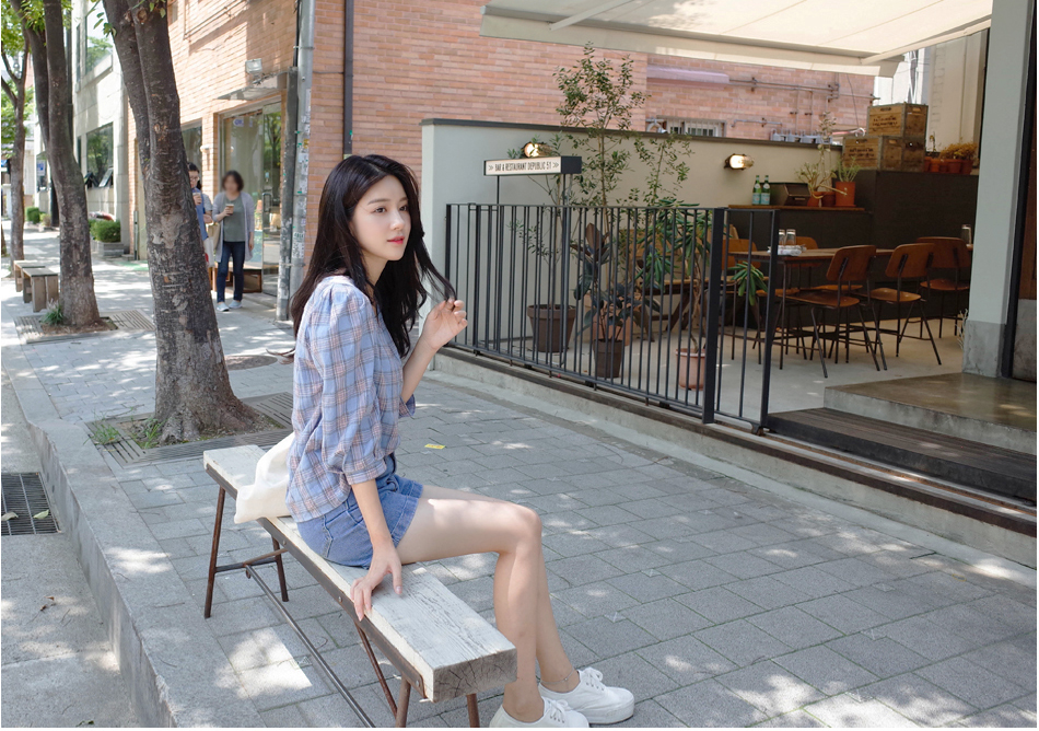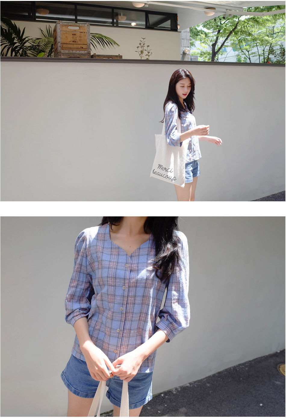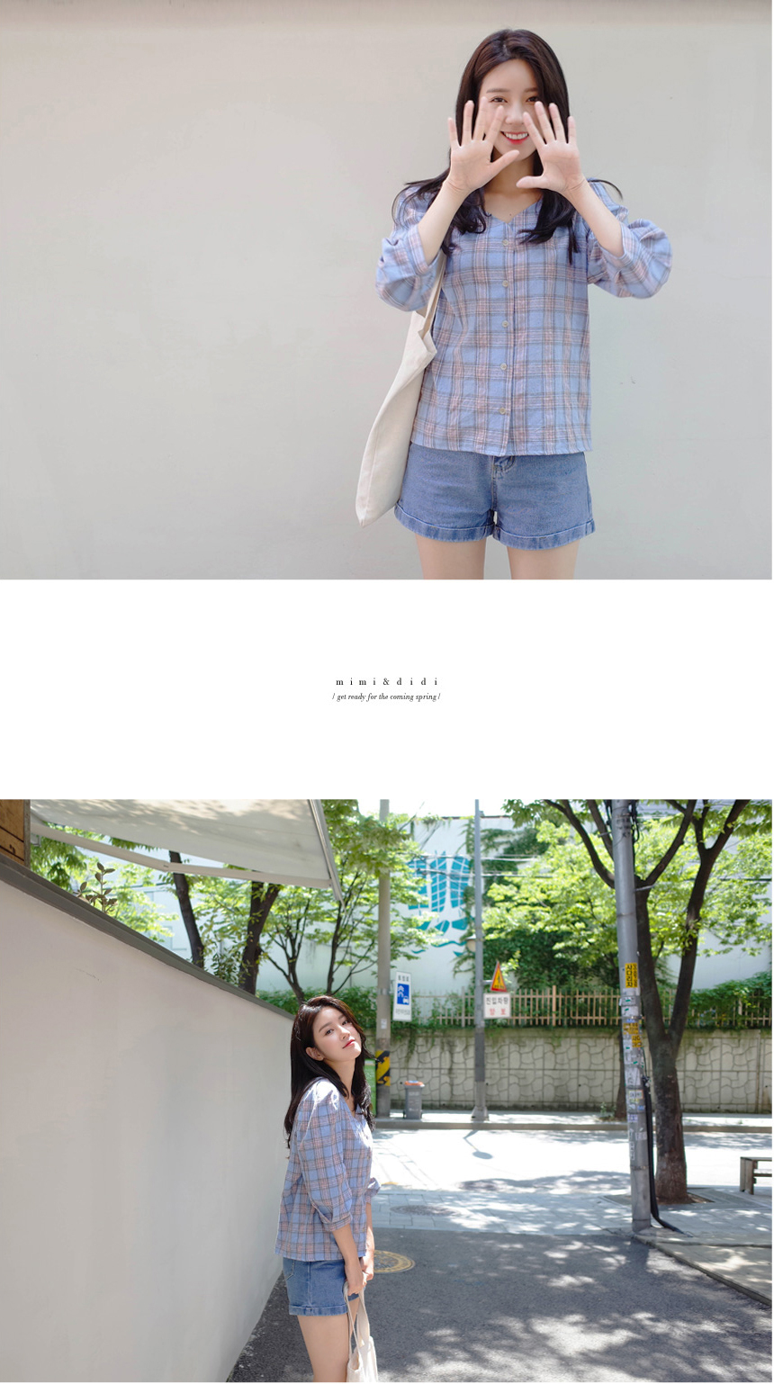 넥라인이 특별한 체크블라우스를 소개할께요:)