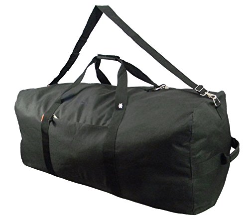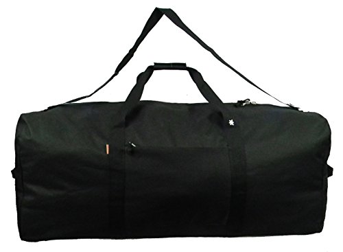 Product Description Super Large duffel bag. Good for travel and use as cargo bag, bike bag, gear bag, hockey bag and equipment bag for all sports. Great ideal Car/SUV Rack bag. Main handles goes all the way to the bottom of the bag for extra support and durability. Material: High Density 600D Polyester. Front zipper pocket. XLarge #10 zipper on all pockets. Folds flat for easy storage NO wheels. Do NOT drag the bag on ground to avoid damage. For heavy load, team lifting is recommended using Self Fabric handle on both ends to avoid injury. 0