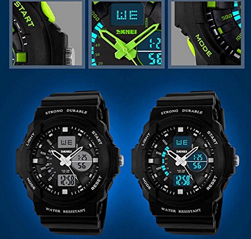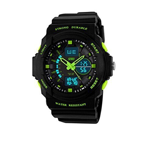 -. Binding : Watch -. Brand : Misskt -. Department : boys -. EAN : 9281398324959 -. Feature : High quality Japan movement and rubber band / Independent dual display: digital and analog / Back light function,12H/24H time format / Alarm clock function, Stop watch function / 5-13 age Children can be appropriate -. Label : Kitchen Momma -. Manufacturer : Kitchen Momma -. Model : XH002 -. MPN : XH002 -. PartNumber : XH002 -. ProductGroup : Watch -. ProductTypeName : WATCH -. Publisher : Kitchen Momma -. Studio : Kitchen Momma -. Title : 30m Water-proof Boys Girls Sport Digital Watch with Alarm Stopwatch Children Watch green