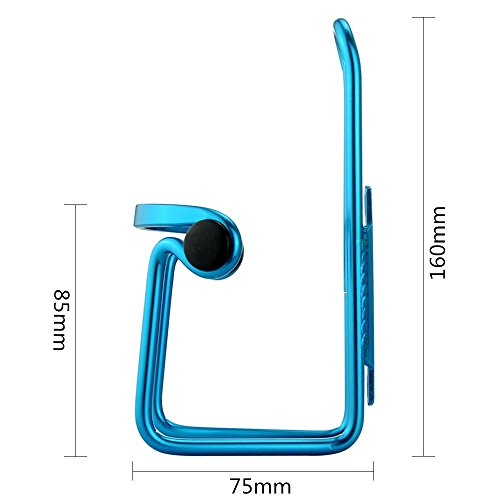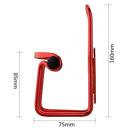 1. Type: Bike water bottle cage 2. Color: Red/ Silver/ Black/ Blue 3. Material: Aluminum alloy 4. Net weight: 0.068 g 5. Size: 85mm*75mm*160mm 6. Light weight and anti rust 7. Elegant design looks attractive 8. bottle accessible from multiple angles 9. Works on all road, mountain, commuter, fixed-gear, other bicycles with or without bottle bosses