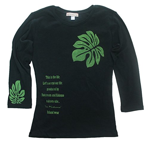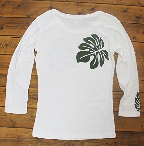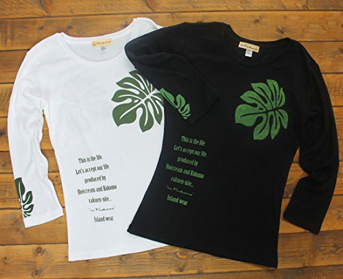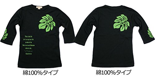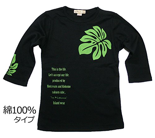 -. Feature : モンステラの代表商品。フラダンスにも最適です。 / 落ち着きのある、安定した柄です。 / 黒地に渋い緑、白地にカーキ色のプリントです。 / セットインスリーブ 綿70% ポリエステル30% / 黒に綿100%のタイプが加わりました。サイズ感が少し小さくなりました。ご注意下さい。