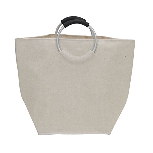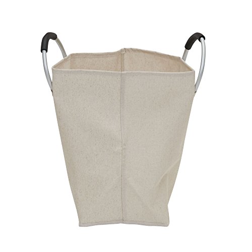 -. Feature : Collapsible hamper can double as a tote / Large attached aluminum ring handles / Fabric reinforced with PEVA backing for extra stability / Conveniently sized to gather and carry / Measures 18.5"h x 10.24"w x 14.37"l