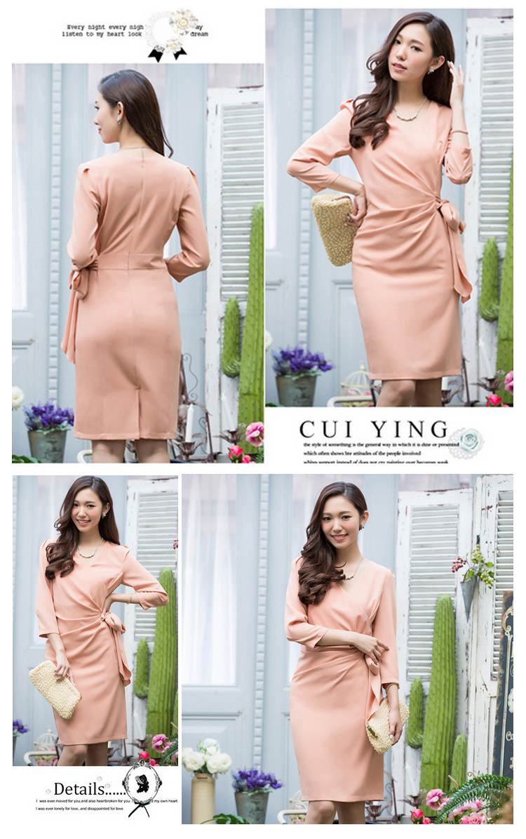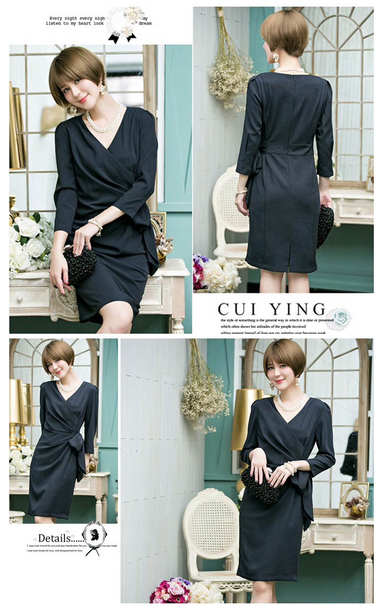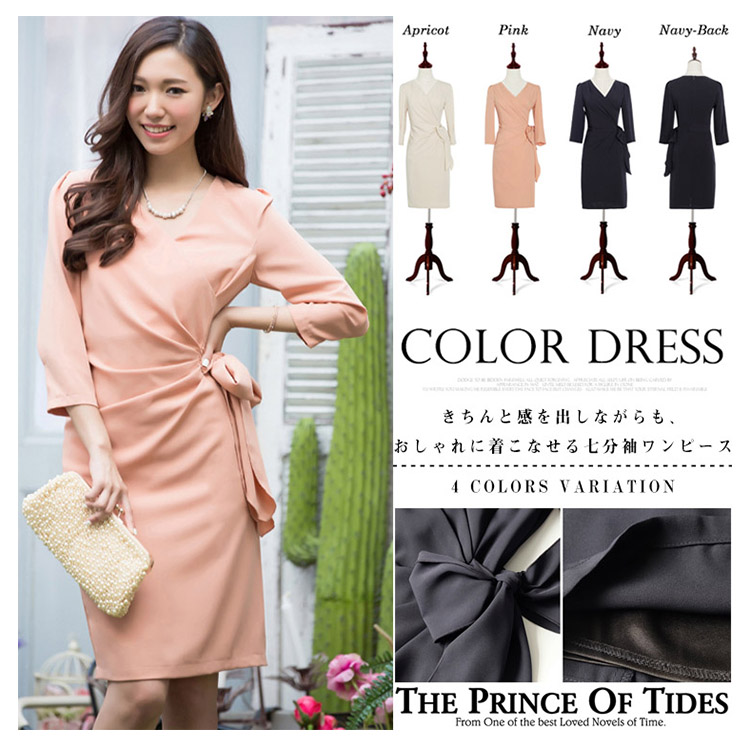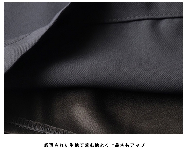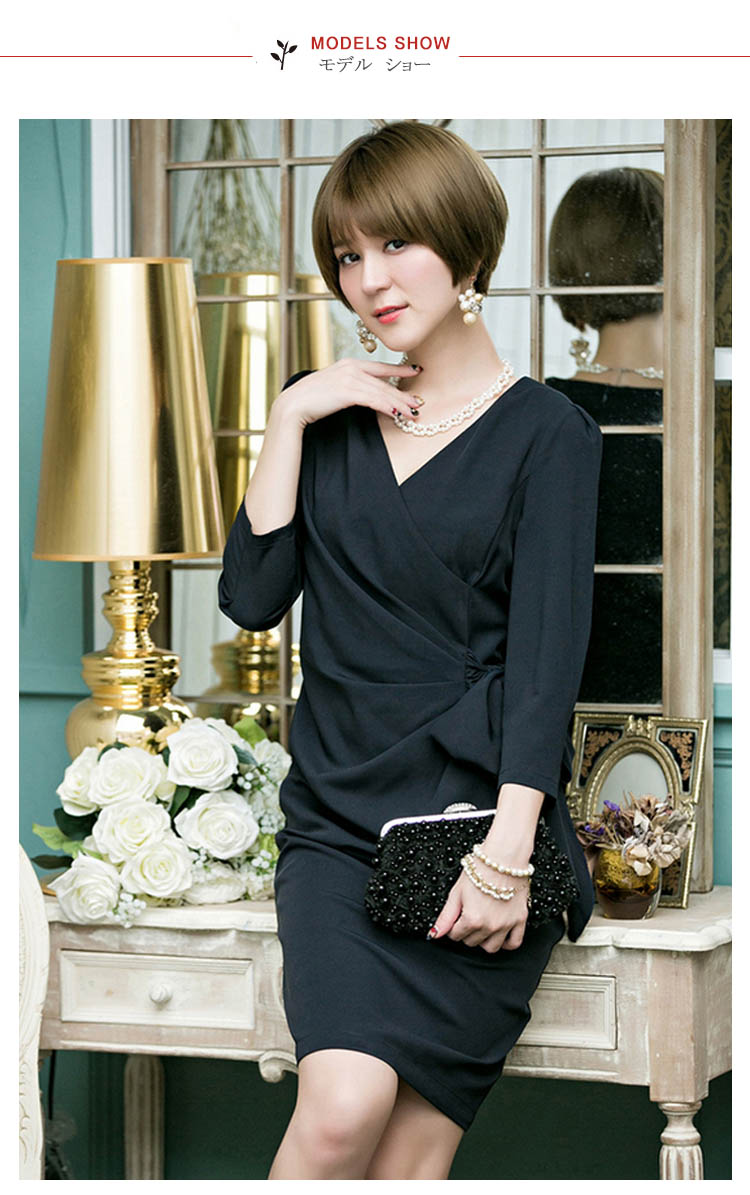 | きちんと感を出しながらも、おしゃれに着こなせる七分袖ワンピースバストからウエスト部分に入ったタックは胸まわり、腰回りをすっきり綺麗見せ気になるお腹周りを自然にカバー。体型をカバーしつつ女性らしいシルエットが魅力的です。エレガントで品のある着こなしが叶うとともに、ヒップ周りや二の腕など気になる部分も綺麗にカバーできるので、幅広い世代の方にお楽しみいただけます | |