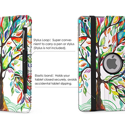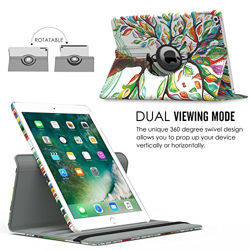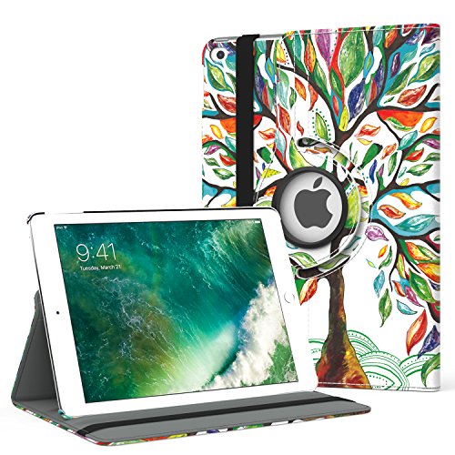 MoKo Case for New iPad 2017 9.7 Inch - 360 Degree Rotating Cover Case with Auto Wake / Sleep for Apple All-New iPad 9.7 Inch 2017 Release Tablet, Lucky TREE