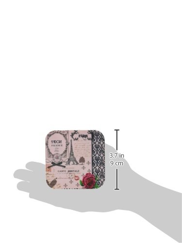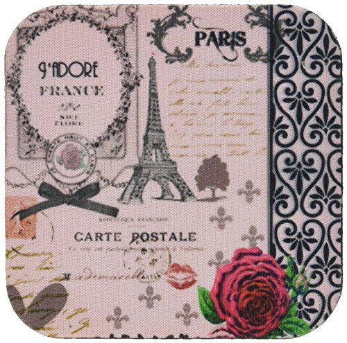 3dRose cst_76593_2 Stylish Vintage Pink Paris Collage Art-Eiffel Tower-Red Rose-Girly Gothic Black Bow and Swirls-Soft Coasters, Set of 8