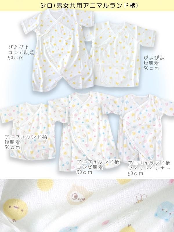 何枚あってもうれしい赤ちゃんの肌着を5枚組にしました!!年間を通して使っていただけるフライス素材です。 製造国:日本 素材・材質:綿100% 商品サイズ:50~60cm 仕様:洗濯機洗い:可 セット内容:短肌着:2枚コンビ肌着:2枚フィットインナー:1枚 ※サプライヤー直送品 ご注文後3~4営業日後の出荷となります【商品名】日本製 出産準備に! フライス素材 新生児肌着5点セット シロ(男女共用アニマルランド柄)