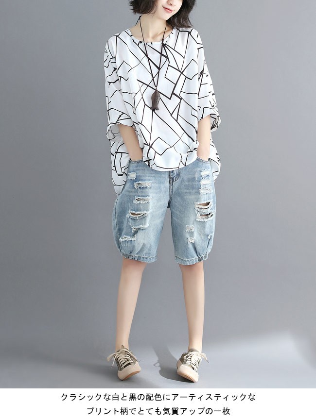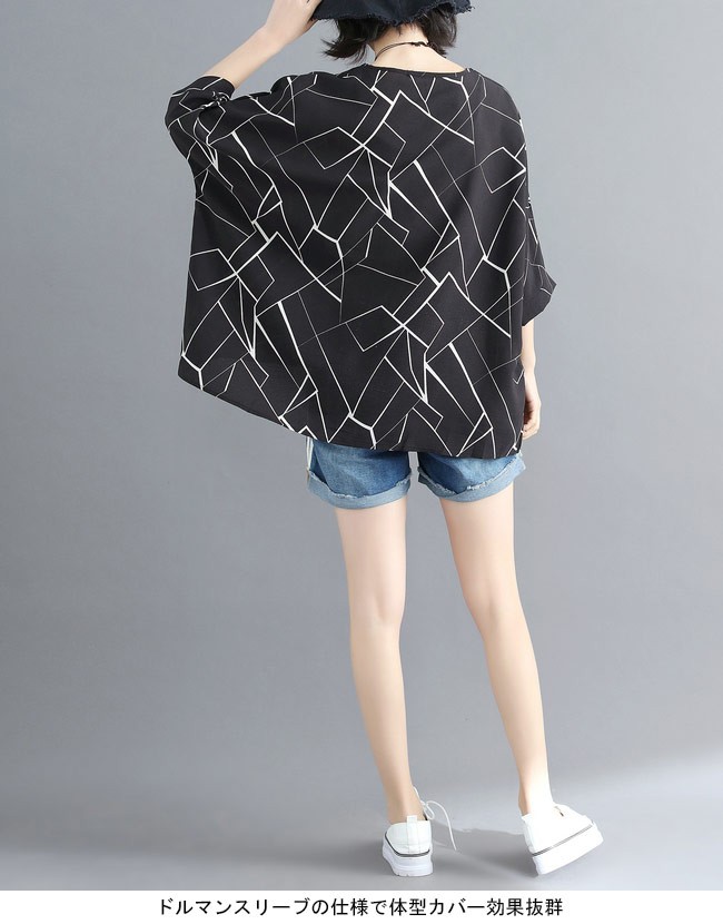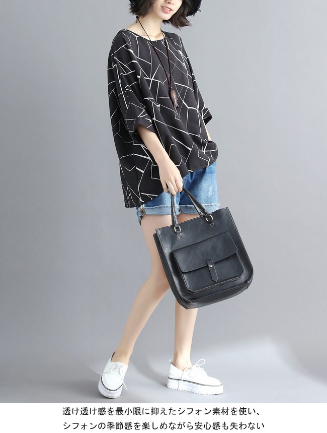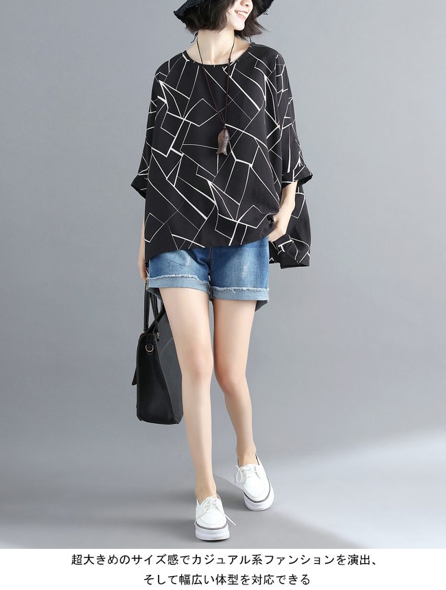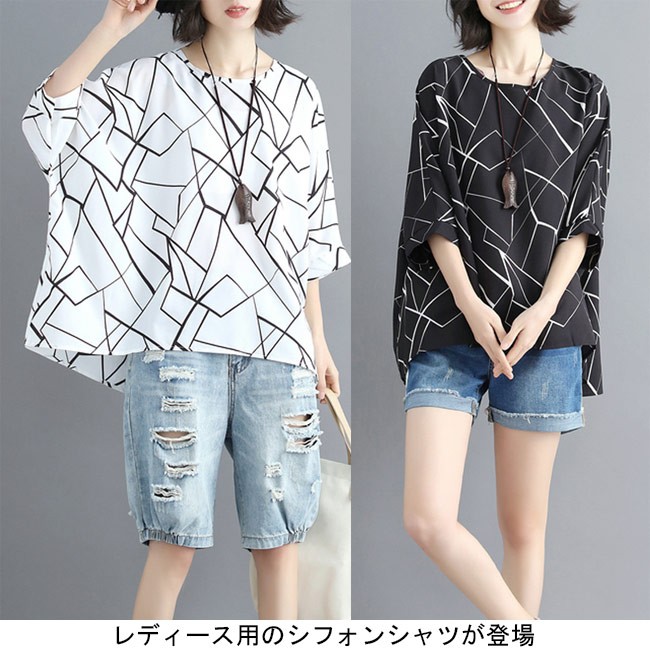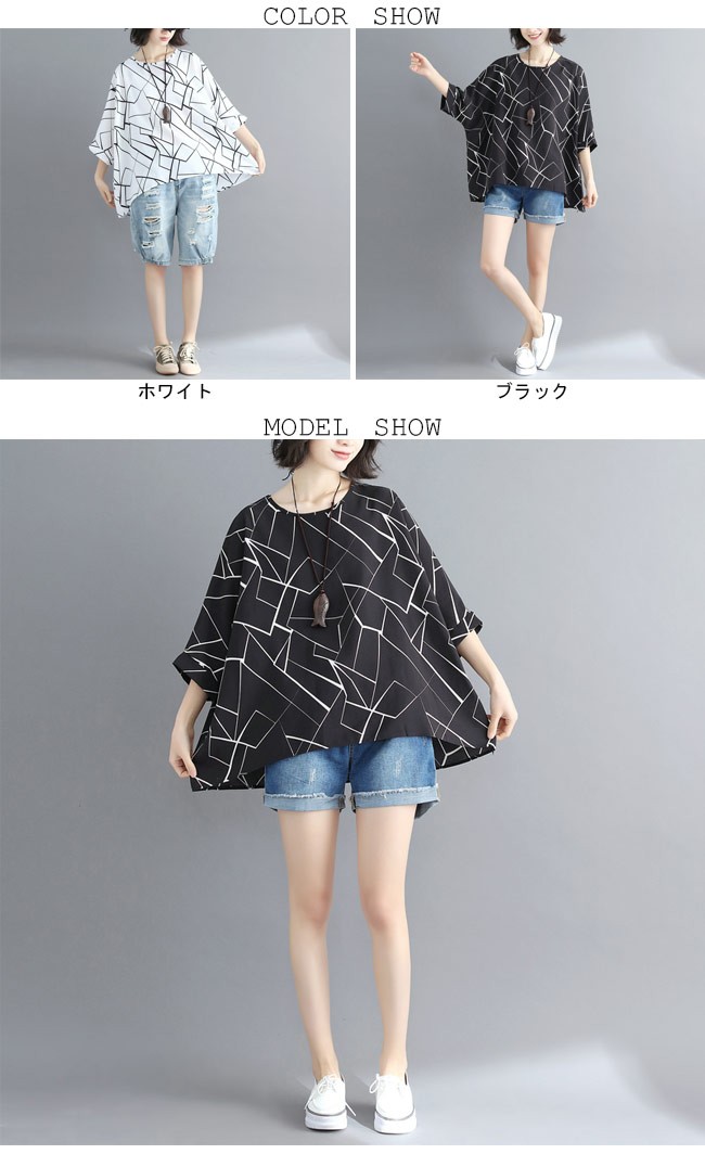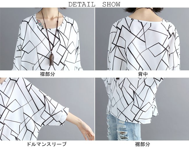 レディース シフォンブラウス 体型カバー 七分丈袖 丸襟 ドルマンスリーブ 女性用 ゆったり トップス 夏物 カジュアル ブラウス 通勤 着やせレディース用のシフォンシャツが登場透け透け感を最小限に抑えたシフォン素材を使い、シフォンの季節感を楽しめながら安心感も失わない超大きめのサイズ感でカジュアル系ファンションを演出、そして幅広い体型を対応できるドルマンスリーブの仕様で体型カバー効果抜群クラシックな白と黒の配色にアーティスティックなプリント柄でとても気質アップの一枚*ネックレスは商品に含まれてませんカラー:ホワイト ブラック素材 ポリエステルサイズ(cm) FF 着丈(前)67 着丈(後)73 バスト158 裾幅150ご注意:※サイズは平置きサイズです。素人採寸ですので、若干の誤差がございます、ご了承ください。