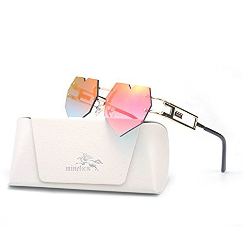 MINCL/Womens Designer Cute Rimless Love Heart Shaped Sunglasses