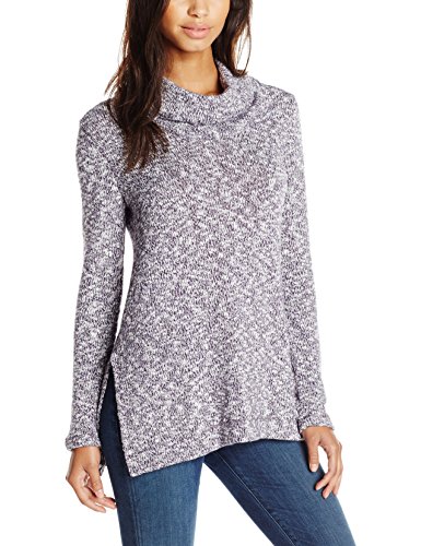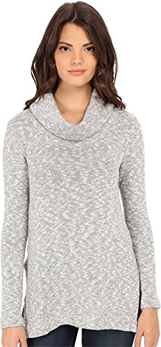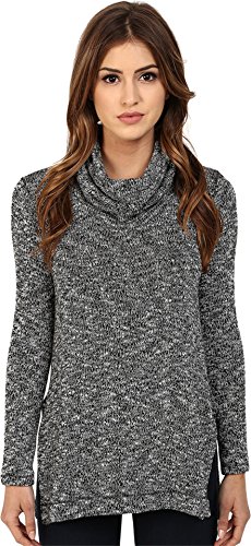 Marled-knit tunic sweater featuring cowl neckline and side splits at hem