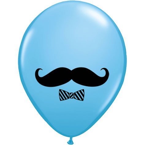 10 Mustache & Bow Tie Pastel Blue latex balloons 11 in