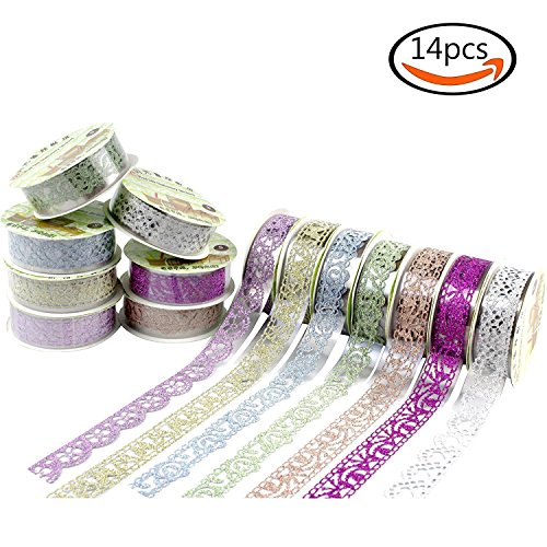LoveS 14 Rolls Multicolor Washi Lace Pattern Glitter Self-adhesive Tape Masking DIY Scrapbooking Decorating Stickers