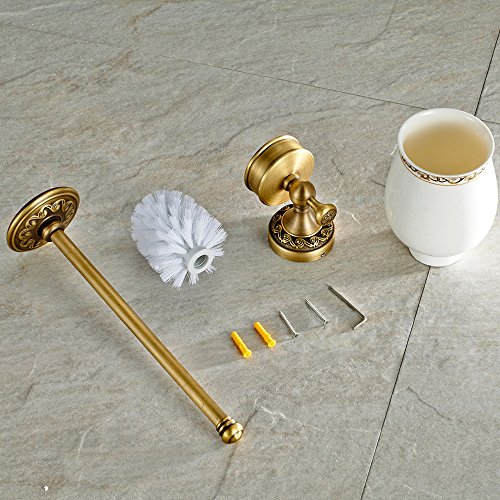 -. Feature : Heavy Duty: Premium brass construction ensures durability and reliability,high quality ceramic cup, Limited lifetime warranty. / Look: Antique brass finish creates a gently distressed golden look with rich light and dark accents. / Rustproof: Antique brass finish surface is anti-rust and glossy, low maintenance cost. / Beautiful: The unique and noble design coordinates well with majority color and schemes fixtures,has the elegant and beautiful appearance. / Installaiton: Complete with wall mounting accessories, Concealed screws, Organize and decorate in one easy step.